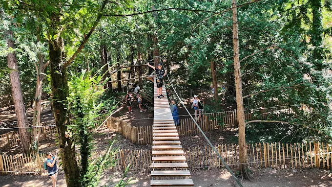 Gadawi Park Adventure is a knotted tangle of tree-top courses and zip lines tucked beside twin lakes, the kind of place that makes adults act like children again. The forest canopy keeps things cool on hot afternoons while seven progressively harder levels thread through trunks and platforms — there’s a crocheted swing, a skateboard plank and a proper zip wire that will make you whoop. Staff run a tight, kindly operation: clear safety briefings in English when needed, hands-on help if someone freezes on a platform, and genuine gestures like hiking into the undergrowth to recover blown-away caps. Families treat it as a weekend ritual, kids collapse exhausted and happy, while visiting travelers praise the value compared with pricier parks further north. The entrance is easily missed from the road; once you find the path between the lakes the place reveals itself as a low-key local anchor for birthdays, school groups and anyone who likes rope, height and a splash of woodland absurdity.